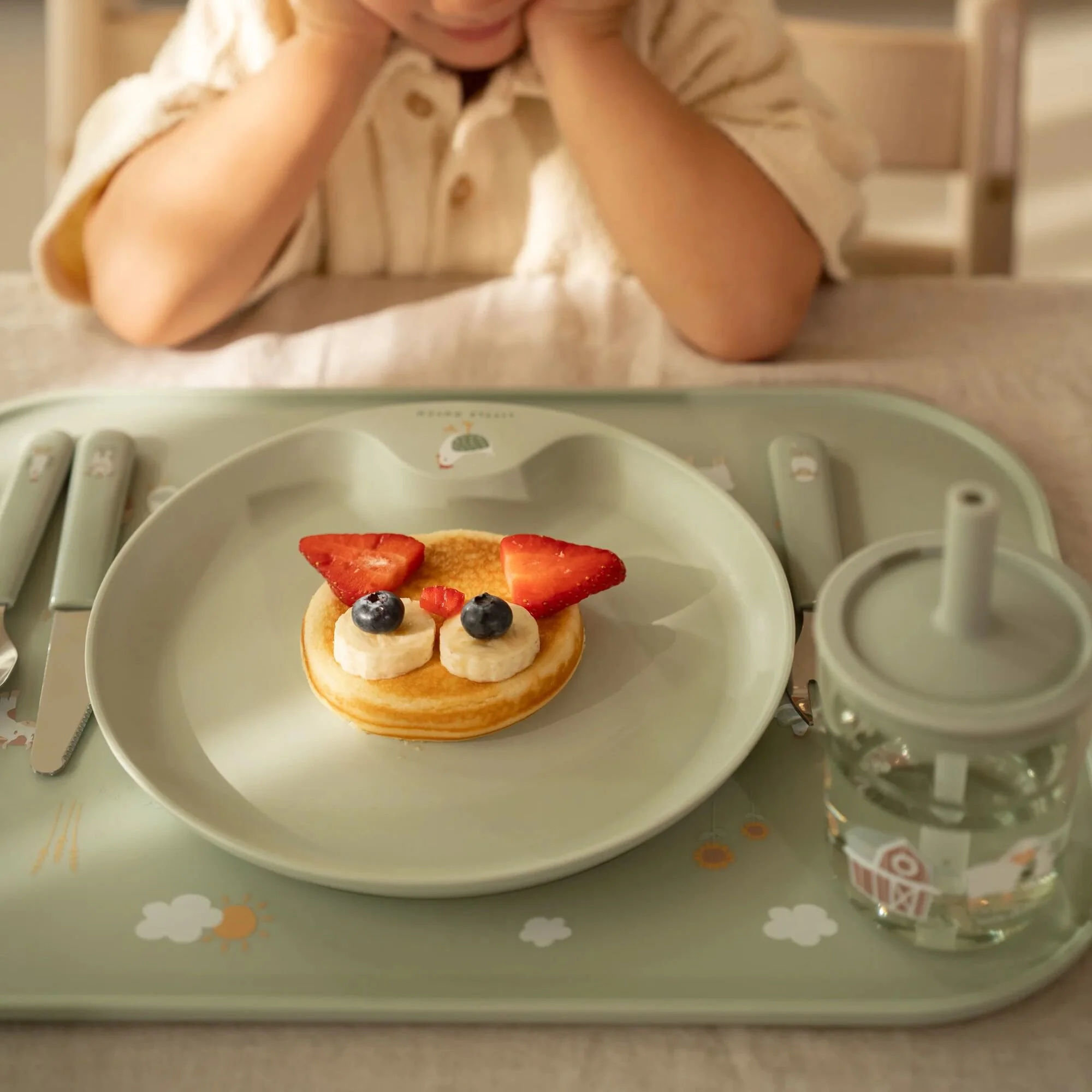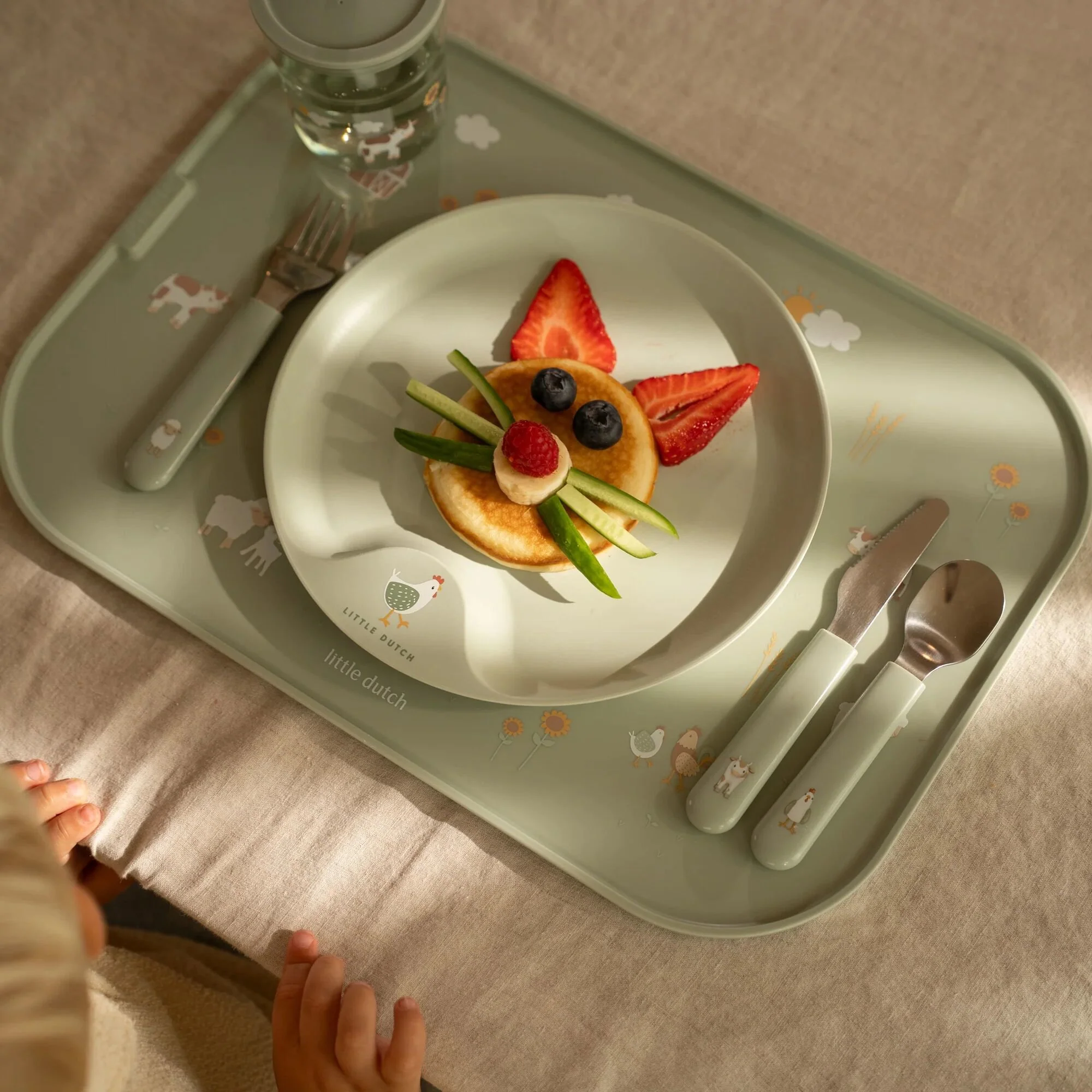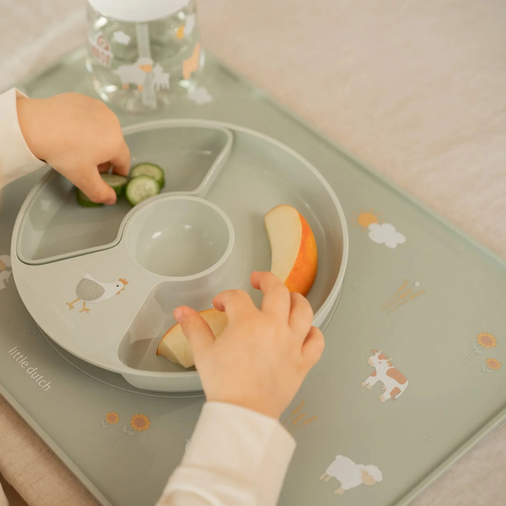 Together at the table, without shuffling and mess. The Mepal Mio placemat with the cheerful Little Farm print of Little Dutch makes mealtimes with your little one just a bit easier. Thanks to the removable anti-slip circle, the plate stays firmly in place, allowing your child to calmly practice eating independently. The placemat is not only practical but also versatile. Use it as a placemat or as a tray – at home or on the go. The sturdy, BPA-free material is resistant to daily use and easy to clean. You can also easily click out the anti-slip circle for a quick clean-up. The cute farm animal design creates a cheerful atmosphere at the table. This way, every mealtime becomes a small moment of enjoying together.