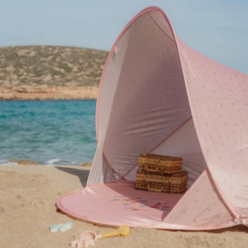 This beach tent with illustrations from the Ocean Dreams Pink collection offers protection against the bright sun and a fresh breeze. Use the stylish play tent on the beach, in the garden, or at a picnic in the park. The pop-up tent for children is easy to set up and store in the storage cover.
