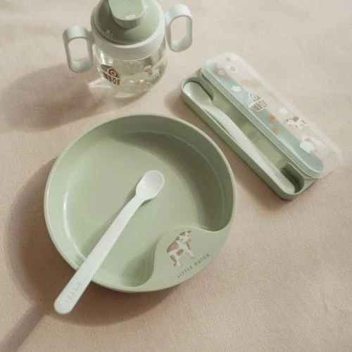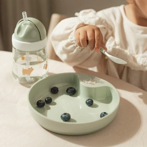 With the Little Farm practice plate from Mepal Mio, learning to eat becomes a bit easier for your child. The plate is equipped with a handy grip that ensures you don’t get dirty fingers when feeding your child. When your child starts eating independently, the bend is a convenient aid for scooping with the spoon. A nice feature of the practice plate is that it can be used in both the microwave and dishwasher, is equipped with a non-slip bottom, and can withstand a bump. Enjoy your meal!