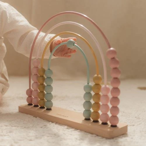 Count from 1 to 10, in all the colors of the rainbow! With an abacus in the shape of a rainbow, counting becomes even more fun! Slide the colorful beads from one side to the other and discover the different shades of pink, yellow, and green. While your child learns to count through play, their fine motor skills are also trained. And when they are a bit older, children can use the abacus to practice arithmetic. A fun way to learn while they play!