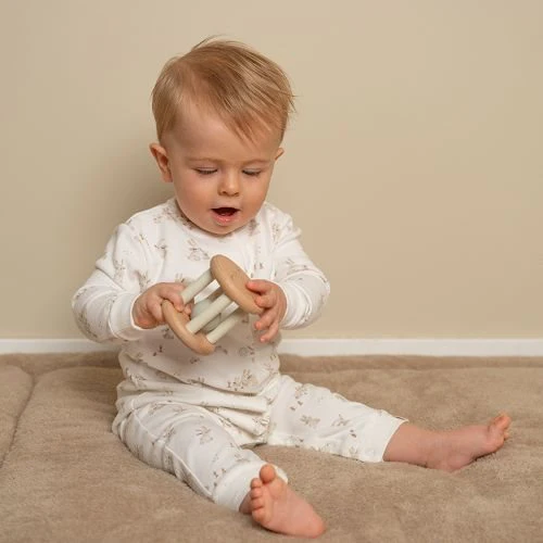 This cute Baby Bunny wooden rattle rolls and rolls, making a rattling sound. Children love to chase it, grab it, and shake it. The toy promotes their hand-eye coordination and is specially designed to be grasped by small children’s hands.