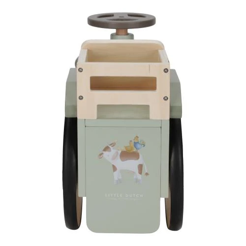 Hey there little farmer! Start your tractor and discover life on the farm. Step by step, you learn to walk, and this wooden walking tractor will help you with that. Imagine having your own farm, with chickens and goats, where you grow crops while riding your own tractor all day. The walking tractor with 4 wheels promotes motor skills and balance. Your child can ride sitting on the tractor and hold onto the steering wheel, or use it as a stability support for their first steps. The loading box at the back of the tractor offers a handy space to collect and store favorite toys. Whether it’s small plush animals, building blocks, or other toys, it teaches your little one to organize in a playful way and use their imagination. Thanks to the rubber strips on the wheels, you don’t have to worry about your floor when your child goes on an adventure. Watch as your little one explores the world with joy, step by step.