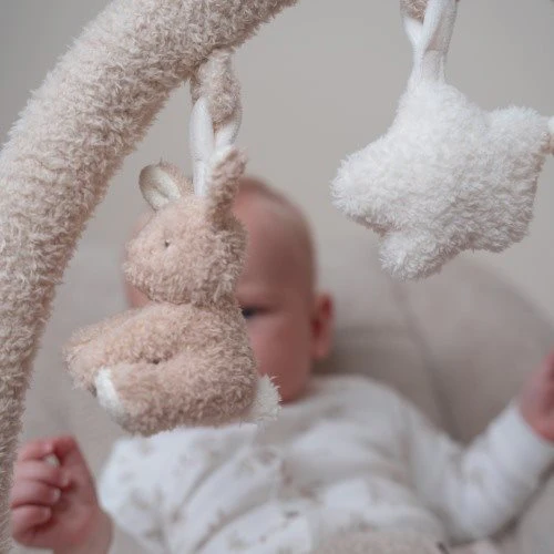 The bouncer offers your child a comfortable place to relax and play. Your child is safe in the 3-point safety belt and can play for hours with the toys on the play bracket. Thanks to the swing frame, the rocking chair starts wiggling with a small movement of your child. Both the backrest and the footrest are adjustable. The chair is supplied with a reduced cushion and an adjustable play arch. There are a jumping bunny, a cloud and a sitting bunny on the play arch. The backrest is adjustable in various positions and the seat can be used in both a rocking position and a fixed position. The bouncer is suitable for your child from birth to 6 months (approximately 9 kg) your child can be comfortable in the seat.