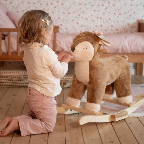 Step onto this lovely rocking animal in the shape of a deer and rock away! The sturdy wooden frame ensures safe playtime, while the soft fur makes it extra cuddly. Perfect for the children’s room!