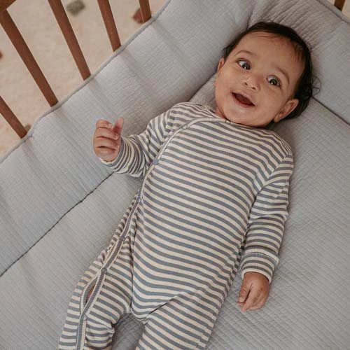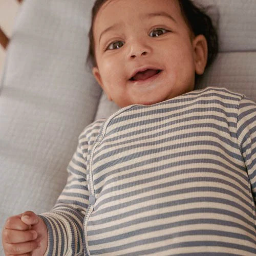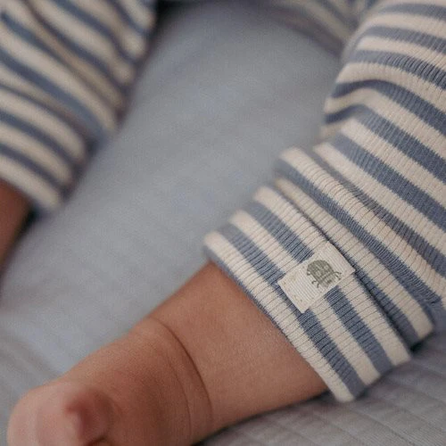 Cherish all the first moments in style! This stylish romper wraps your little one in comfort, from head to toe. The fabric has a charming stripe texture and a beautiful blue color. The wrap design makes it easy to dress and undress your little one. Made from soft, organic cotton, it ensures a comfortable fit for your little one. Combine with other items from the coordinated Forest Friends collection. Available in sizes 44, 50, 56, 62, 68, and 74, for the perfect fit from the very beginning.