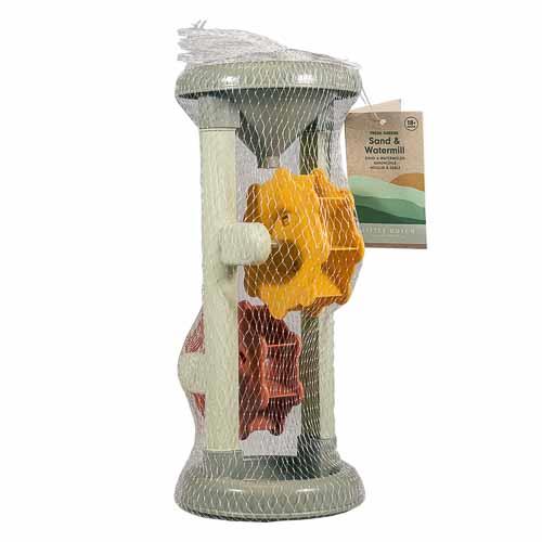 Getting to know gravity and speed in a playful way? You can do that with this water and sand mill Fresh Greens. At the top of the toy is a funnel where water or sand enters. When the water or sand passes through the funnel, it lands on the mills that will spin around. Fascinating toy to play with, to watch, and to discover how it works.