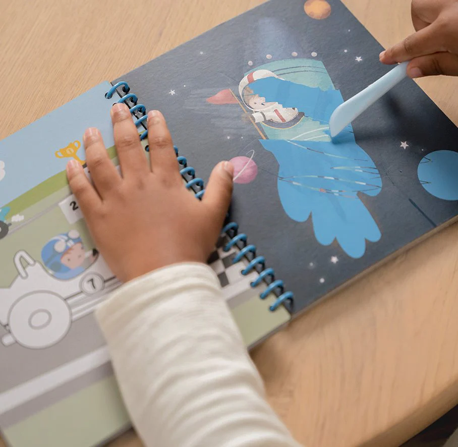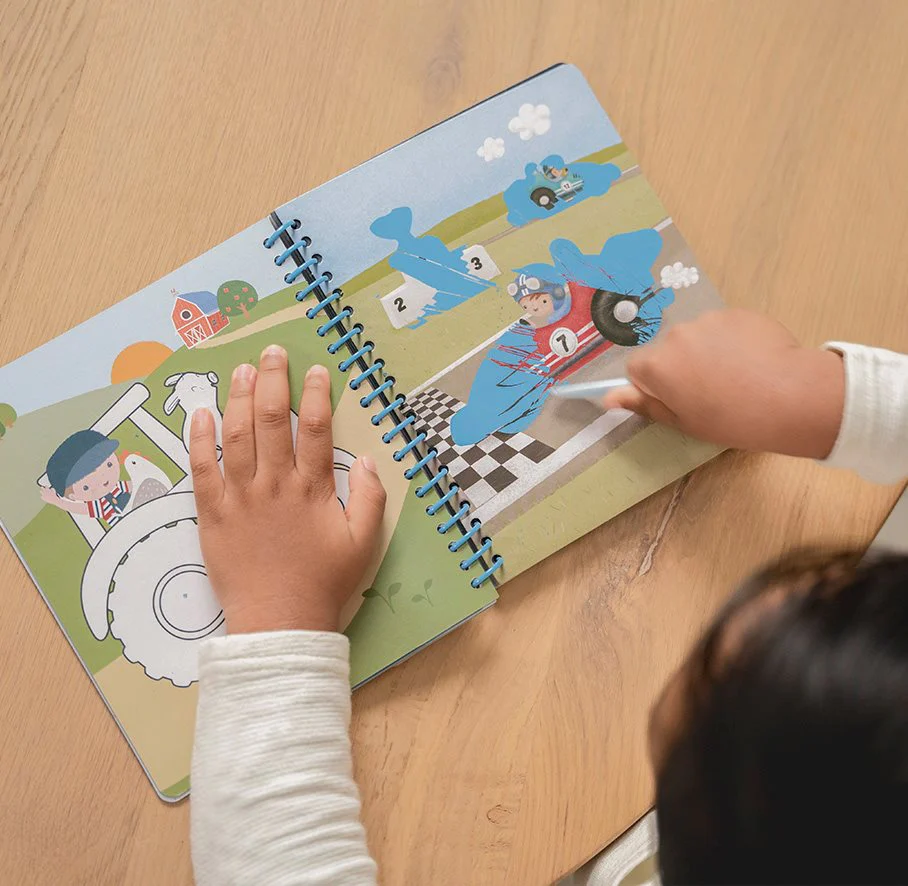 The scratch cards and coloring pages in the scratch and sketchbook ‘Jim & Friends’ by Little Dutch are a fun creative activity for budding artists. With the scratch pen, children can scratch the scratch cards and reveal the figures! In addition to scratching, the most beautiful creations can be made on the coloring pages with the stencil. Join Jim on an adventure on the farm, the circuit, in space, underwater, on safari, in the air, and on the water. The scratch and sketch set consists of 10 scratch cards, 8 coloring pages, a stencil, and a scratch pen.