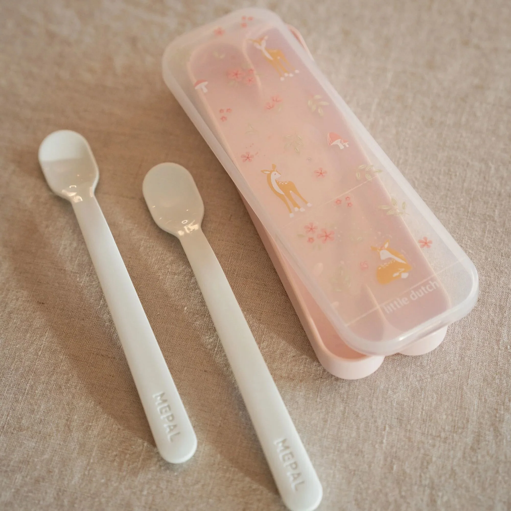 For the very first bites full of love. For little mouths with big appetites, there is the Mepal Mio baby spoon, with the cute Fairy Garden print of Little Dutch. The spoons are delivered as a set of two in a handy storage box. This way, you can easily take them with you everywhere. The spoons are narrow and shallow, so your little one can learn to eat safely and comfortably. Thanks to the long handle, you can scoop out even the last bite from a jar without any mess. After use, the spoons can simply go in the dishwasher. This way, they are ready in no time for the next meal.