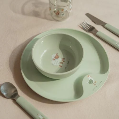With the Little Farm children’s dinnerware from Mepal Mio, your child learns to eat and drink independently. The set consists of a cutlery set, drinking glass, children’s bowl, and a children’s plate. A nice feature of the products is that they are suitable for small children’s hands, can withstand a bump, are lightweight, and dishwasher safe. Both the plate and the bowl can be used in the microwave.