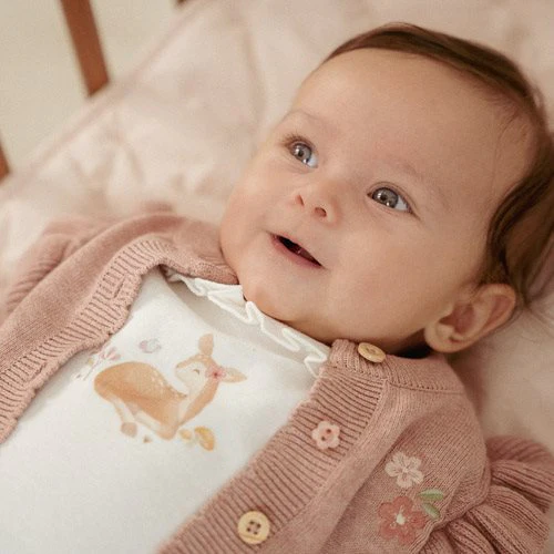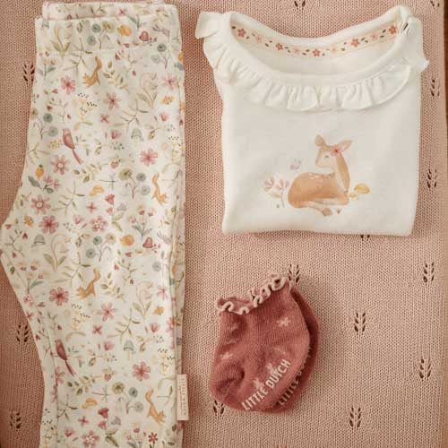 Hello deer! This romper is made from soft organic cotton and is adorned with an enchanting scene from the Fairy Garden, where a little deer enjoys the beauty of the flowers in the garden. The refined ruffles along the neckline give it an extra cute appearance. With long sleeves and convenient snap buttons on the shoulder, this t-shirt ensures both comfort and ease when dressing. Designed to seamlessly pair with any piece from the {{1cf1a06214ed3d17190b4537399e}} collection so you can endlessly mix and match. Available in sizes 44, 50, 56, 62, 68, and 74.