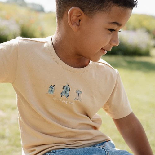 Step into a world full of wonder with this charming almond-colored T-shirt, specially designed for small adventurers. Made from the saggy organic cotton, this T-shirt provides comfort if your little one goes on your way to the next adventure outside. The embroidered beetles on the front inspire your little one to find animals outside of leaves or crawl along twigs. The Forest Friends collection is carefully designed and coordinated so that each piece can easily be combined with every short or long pants from the collection. Available in sizes: 74, 80, 86, 92, 98 and 104. The sizes 74, 80 and 86 have a snap closure on the shoulder.