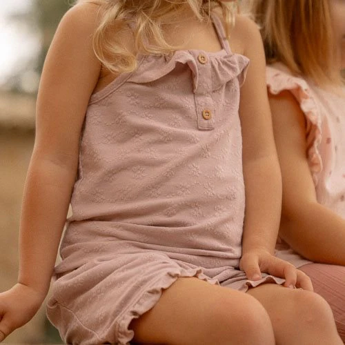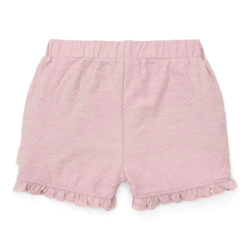 Step into summer with purple magic! These lilac shorts enchant your day with their beautiful lilac color and charming floral pattern. Made from a blend of organic cotton and viscose, they offer comfort and breathability. The shorts feature side pockets and an elastic waistband. The hem is adorned with refined ruffles for a playful and stylish charm. Opt for a co-ord set with the matching top or mix and match with other items from the coordinated Fairy Garden collection. Available in sizes 74, 80, 86, 92, 98, and 104.