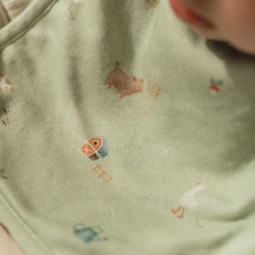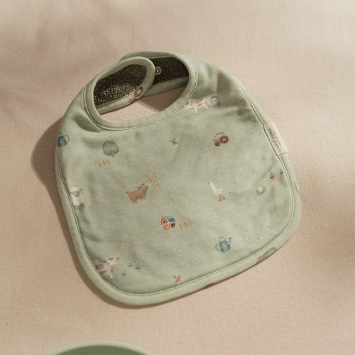 Eating and making a mess, your little one does it in style with a Little Dutch bib. The bib has a soft terry cloth on the back and is equipped with two snaps to adjust the size. The bib has a high absorption capacity and is nice and long. This is practical to prevent spilling on clothes as much as possible. This one from the Little Farm collection is enriched with the beautiful farm print. Made of 100% cotton.