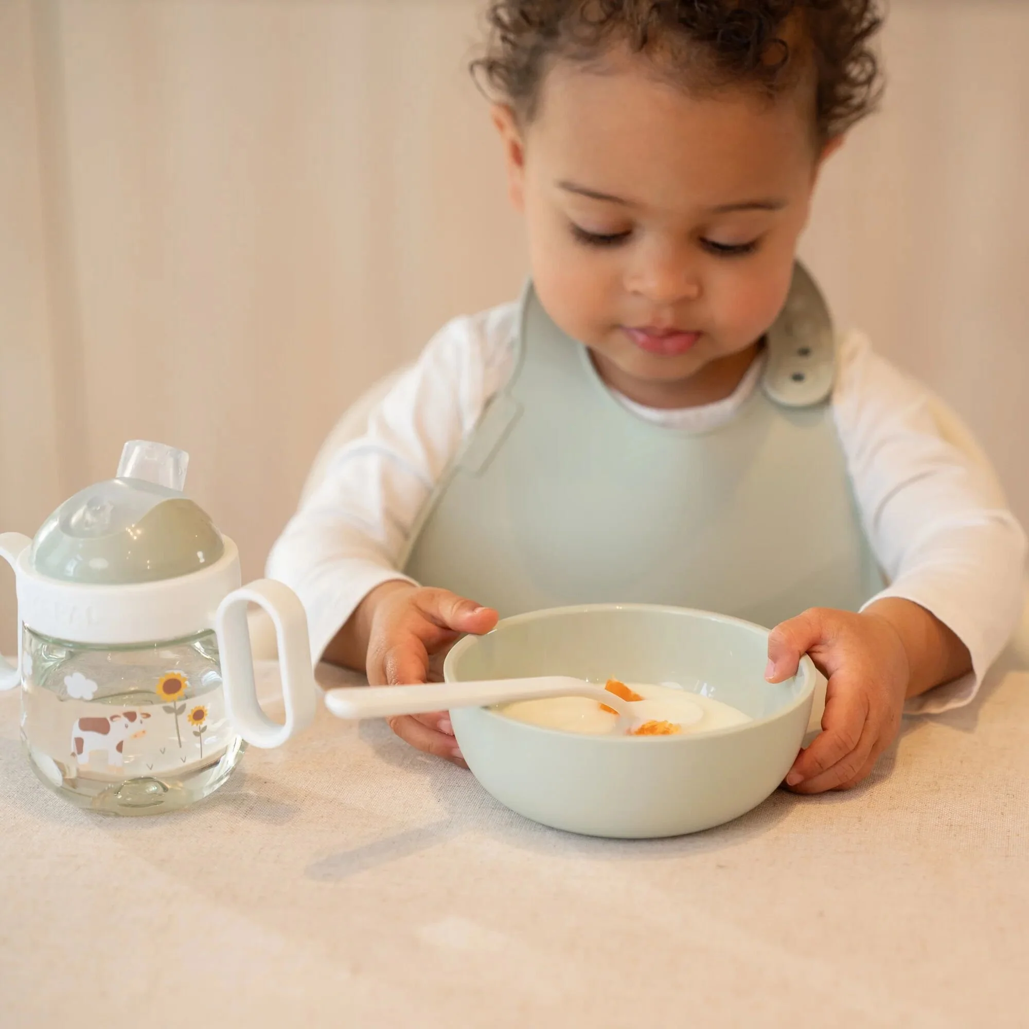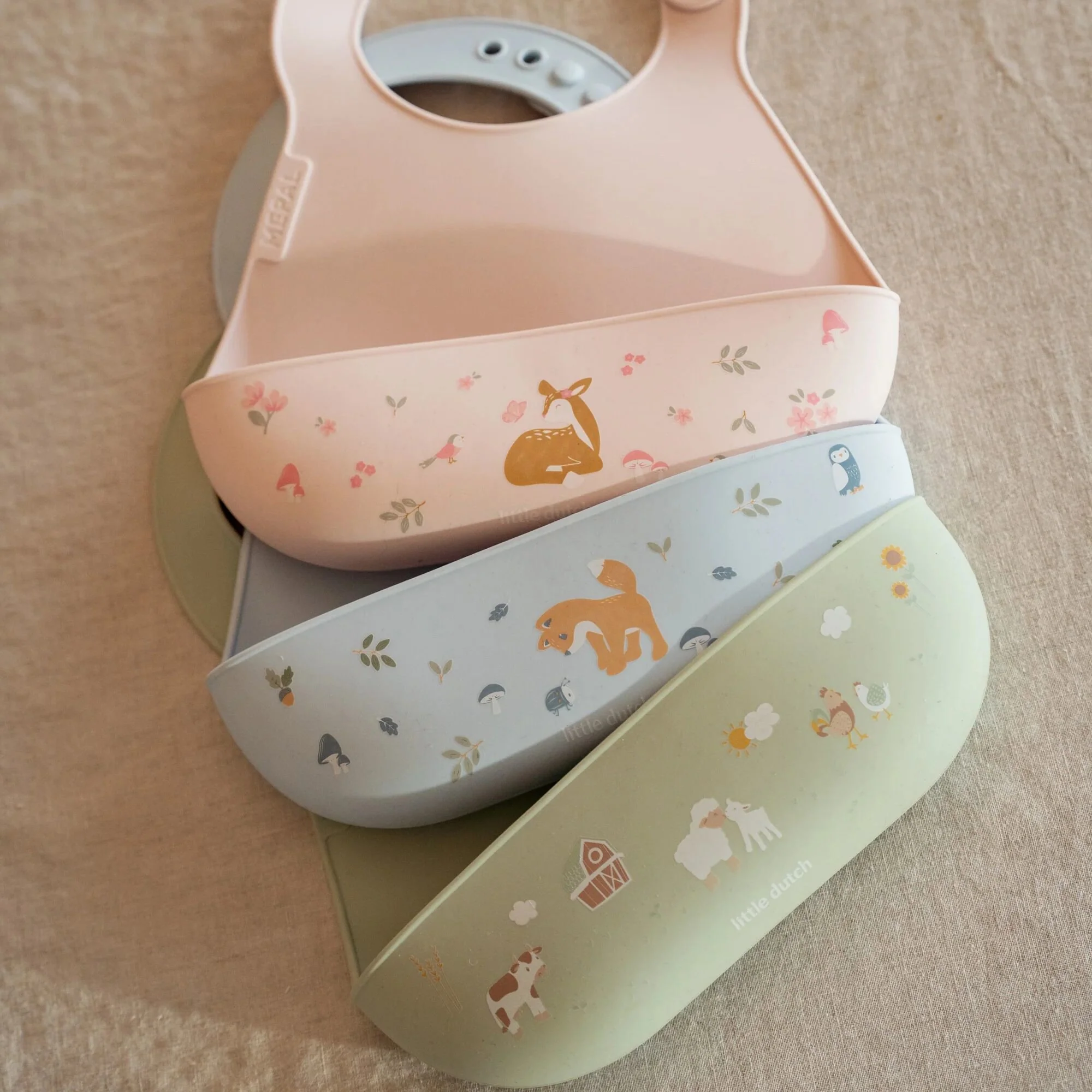 Clean eating, with a smile. The Mepal Mio bib with the cheerful Little Farm print of Little Dutch protects clothes during meals and helps your child practice eating independently. Thanks to the comfortable fit and adjustable closure, the bib stays securely in place and grows with your little one. The catch tray collects spilled bites and sips, so less ends up on the floor. This saves cleaning up and keeps mealtime relaxed. The bib is made of sturdy, BPA-free material and is easy to clean – by hand or in the dishwasher. The cute farm animal design makes every meal a cozy moment at the table.