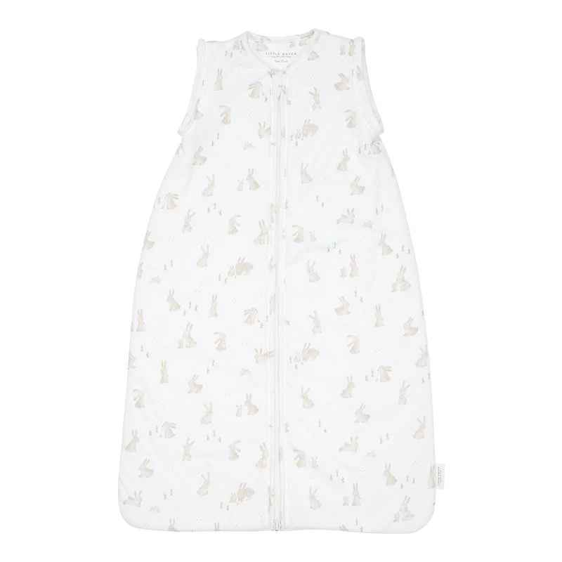 The Little Dutch Winter sleeping bags with detachable sleeves are ideal during the cold winter days. A winter sleeping bag ensures that your child can sleep comfortably and safely. With a sleeping bag, your child is less likely to roll himself over from the back to the belly, climb out of bed more difficult and do not toss himself. The hibernation bag has a zipper on the front, which opens from bottom to top. This way your child cannot turn off the sleeping bag himself. The outer fabric from sleeping bag Baby Bunny is made of 100% cotton and the lining is made of 100% polyester. The sleeping bag is available in 70 cm and 90 cm.