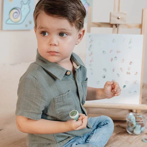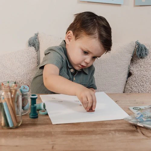 Let your little one create their own adventurous forest with the Forest Friends stamps. This stamp set contains 16 different stamps, including a beautiful owl, hedgehog, and fox, as well as blueberries, mushrooms, and a bee. The stamps are self-inking, so you don’t need separate ink – easy and ready to use immediately! A fun and easy way to stimulate children’s creativity while developing their fine motor skills. Suitable for children from 3 years old.