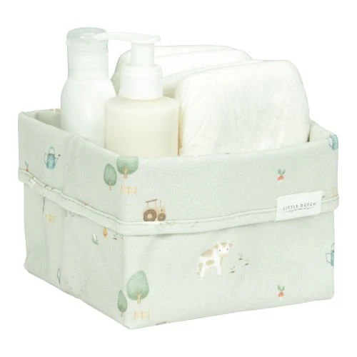 No more scattered diapers, tubes, and bottles: with this large changing table basket from Little Dutch, the changing table remains tidy and organized! The changing table basket from Little Dutch is beautifully finished and provides storage for all the products you need daily to care for your baby. A beautiful accessory for the nursery. This one from the Little Farm is enriched with the beautiful farm print. Also available in other sizes and shapes.