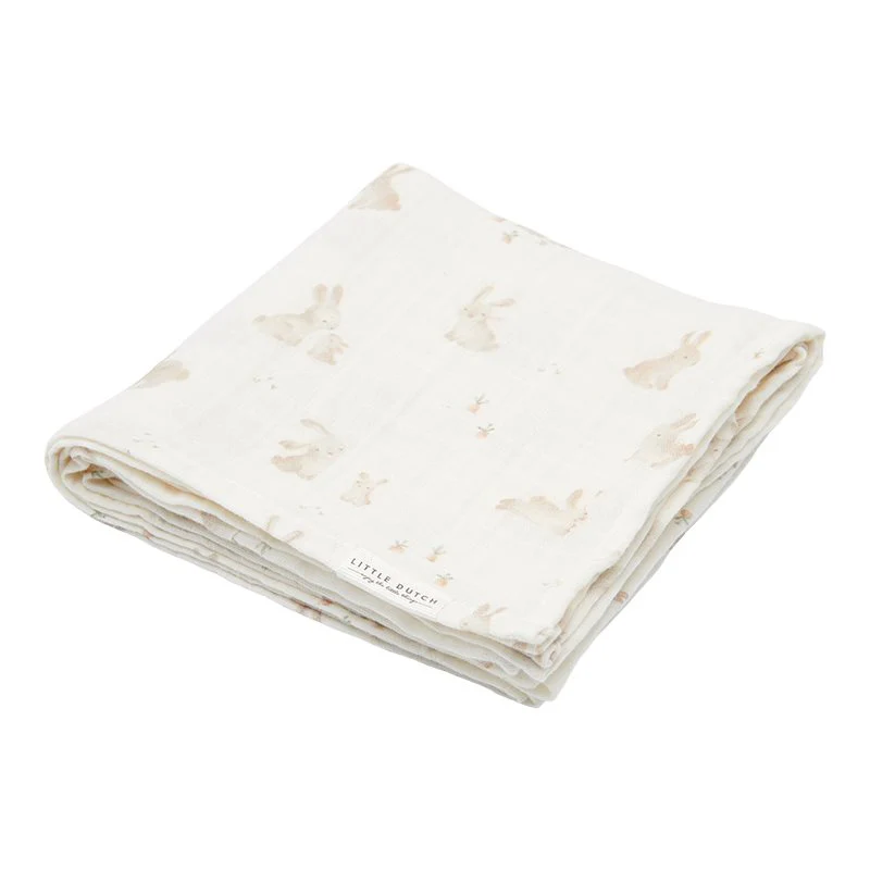 The Little Dutch Hydrophilic cloths are real multifunctional must -haves! Made from 100% organic cotton and OEKO-TEX certified. The pre -washed hydrophilic cloths feel extra soft, have a high absorption capacity and are quick drying. Ideal for drying your baby after the bath, as a bottom at the change or as a burp cloth after feeding. This set contains a hydrophilic cloth with the cute rabbit print of the baby bunny collection and a solid beige hydrophilic cloth. Both cloths are 70 x 70 cm. Our hydrophilic cloths are also available as Swaddle 120 x 120 cm, washcloths and mouth wipes.
