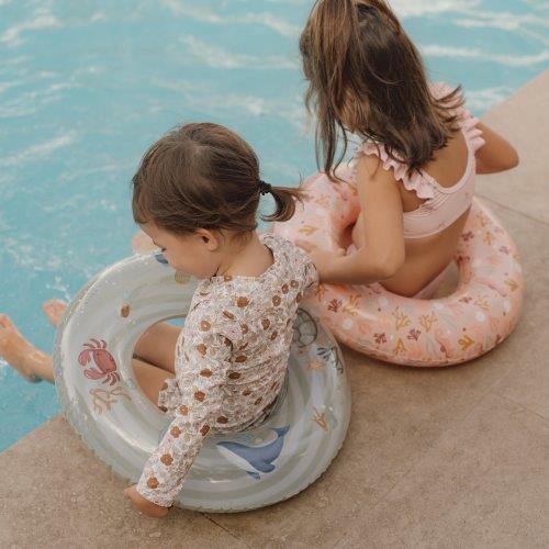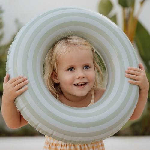 Floating in the water becomes a party with the Fresh Greens swim ring. The green and white striped inflatable swim ring is decorated with various sea figures. Hold on tight and paddle through the water. Water fun guaranteed for your little one! Deflating is easy, and the swim ring is compact to take with you afterward. Also fits in your suitcase on vacation! Once inflated, the swim ring is 50 centimeters wide.