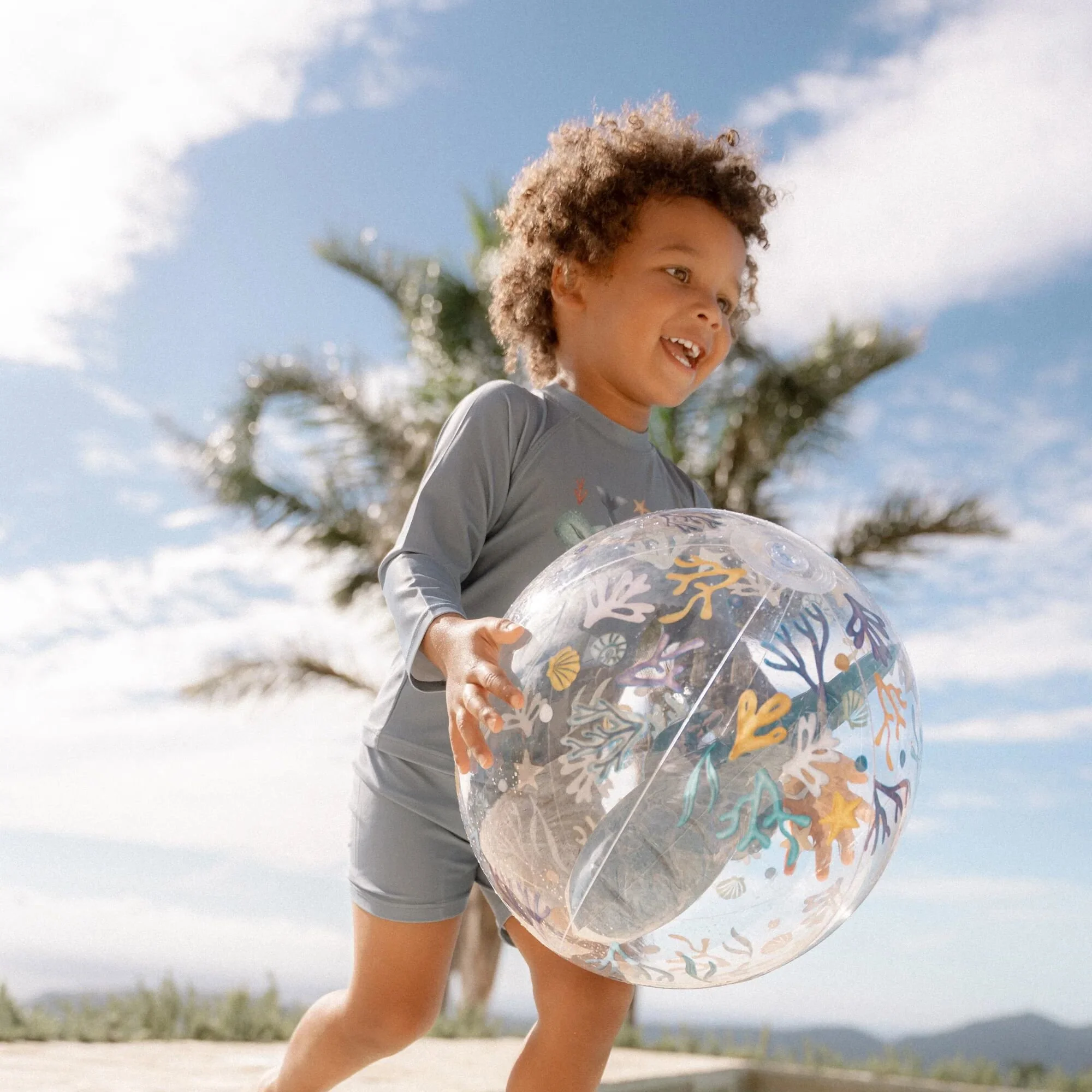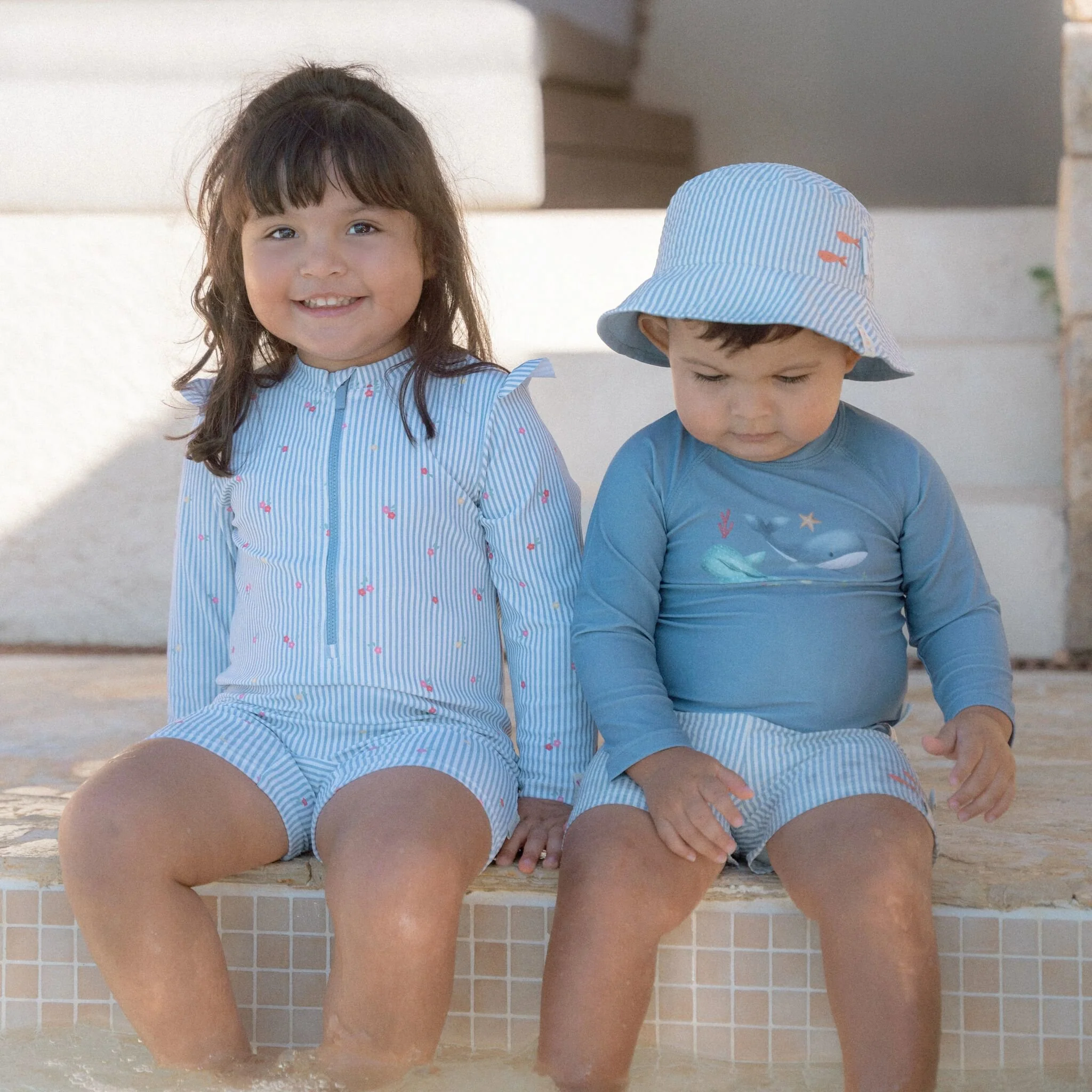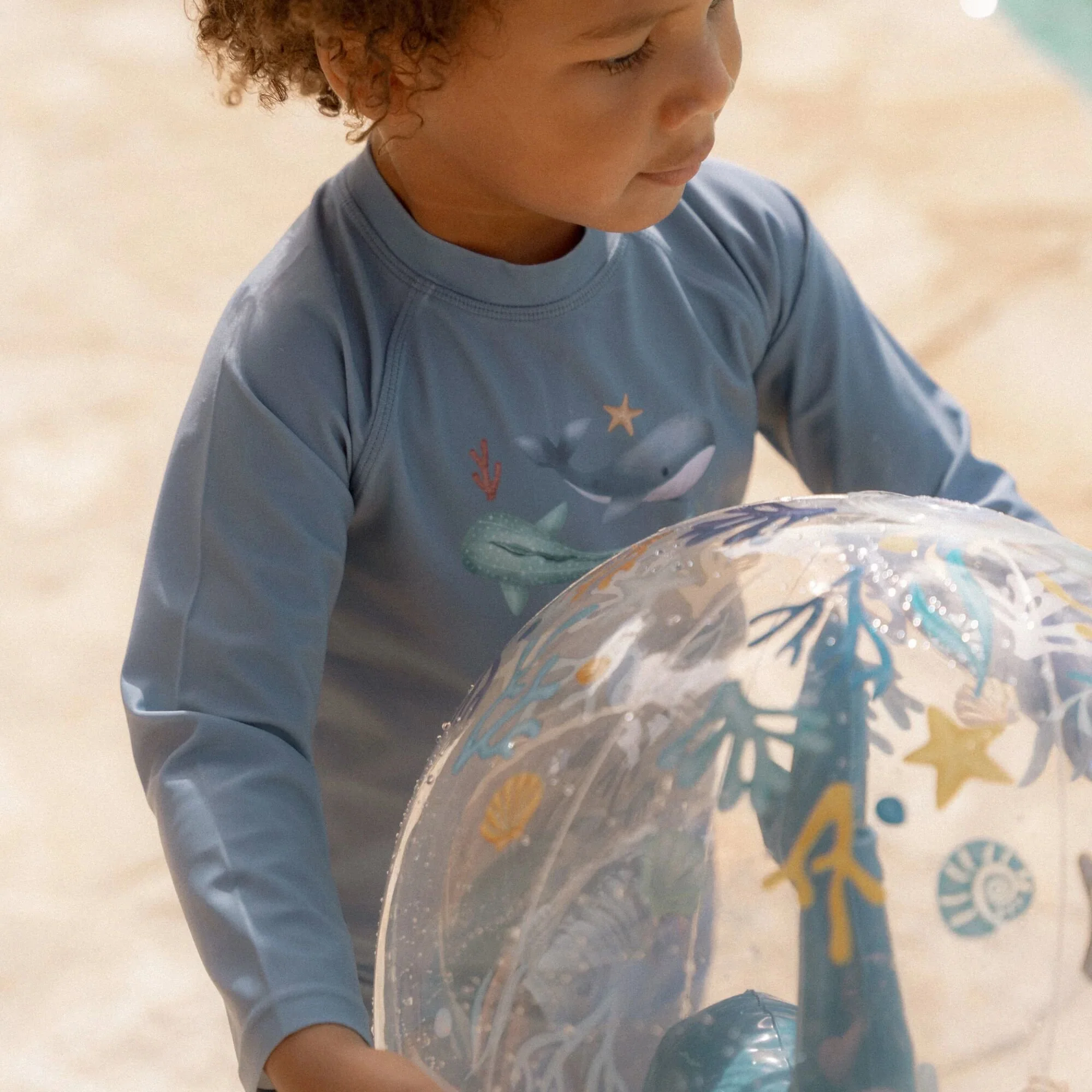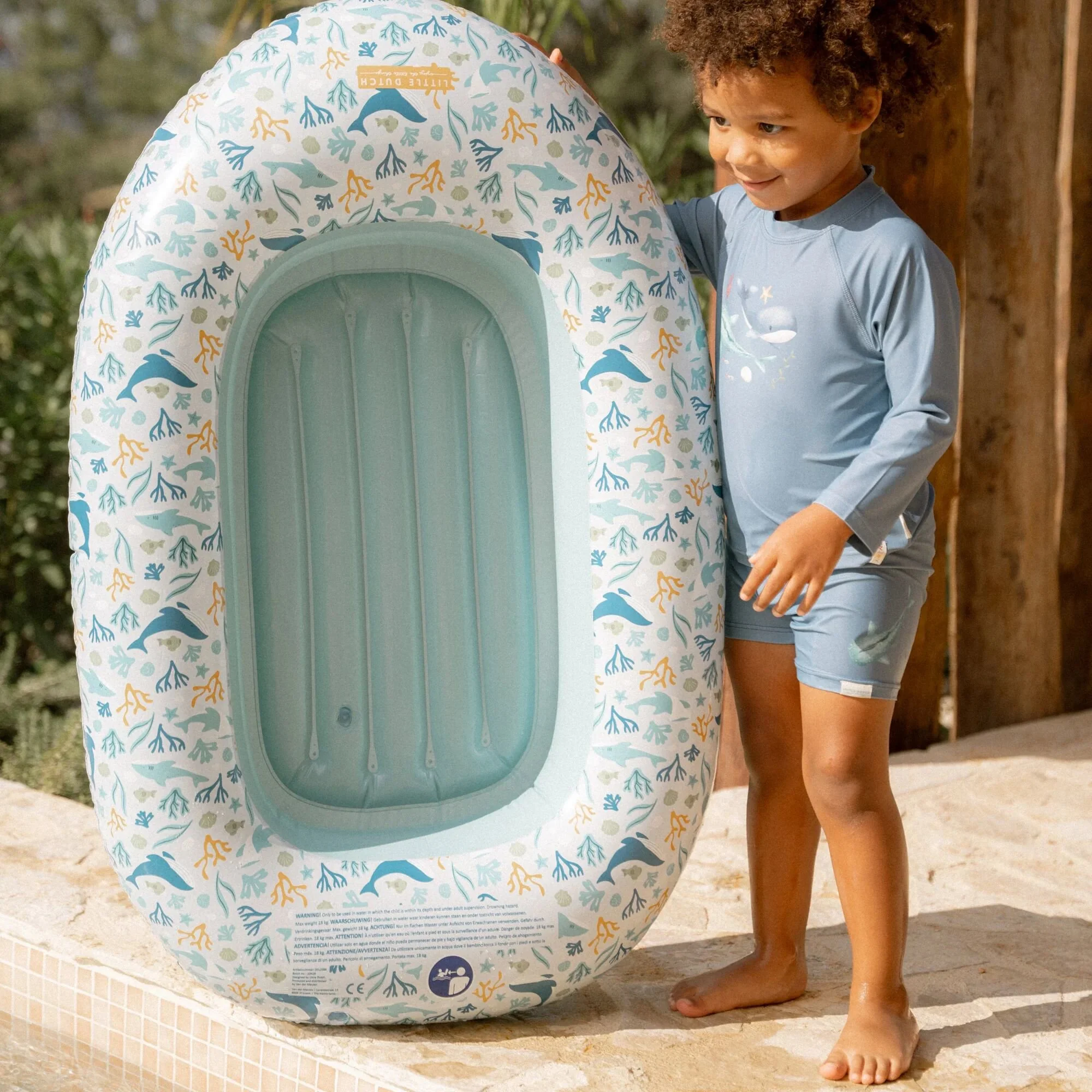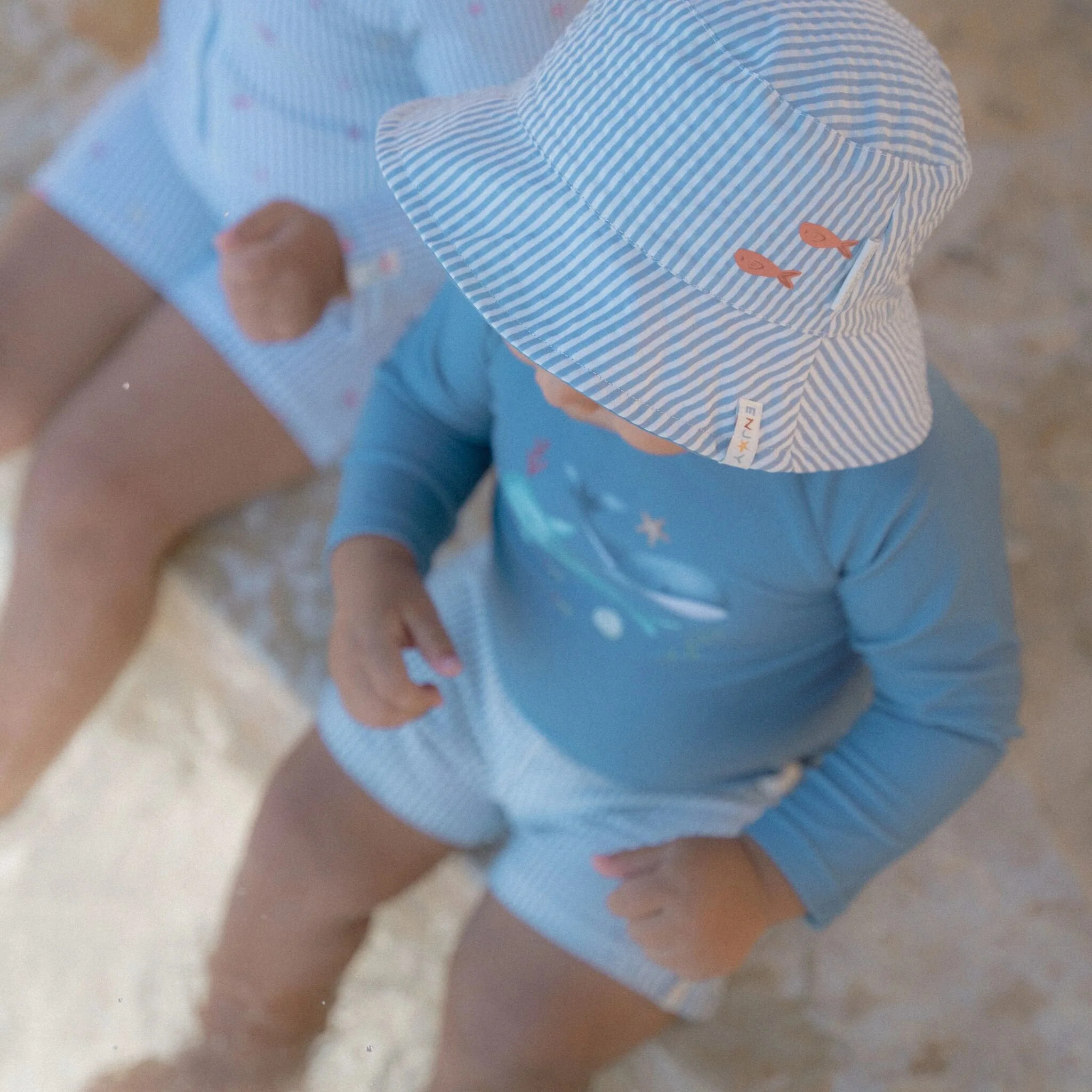 Embrace the sunshine and let the adventure begin! Put on your swim shirt and grab your favorite beach toys for a day full of water fun. This swim shirt provides warmth in the water and protects you from the sun, allowing you to play all day long. In a stylish Ocean Blue shade with two cute whales on the front, this long-sleeved swim shirt not only gives your little surfer a cool nautical look but also ensures a comfortable fit. Thanks to the handy zipper at the back, it’s easy to put on and take off, even when your little one is wet and sandy. Available in sizes 62/68, 74/80, 86/92, and 98/104.Complete the look with the matching swim trunks and a bucket hat. Don’t forget to always use sunscreen to give your little one extra protection.