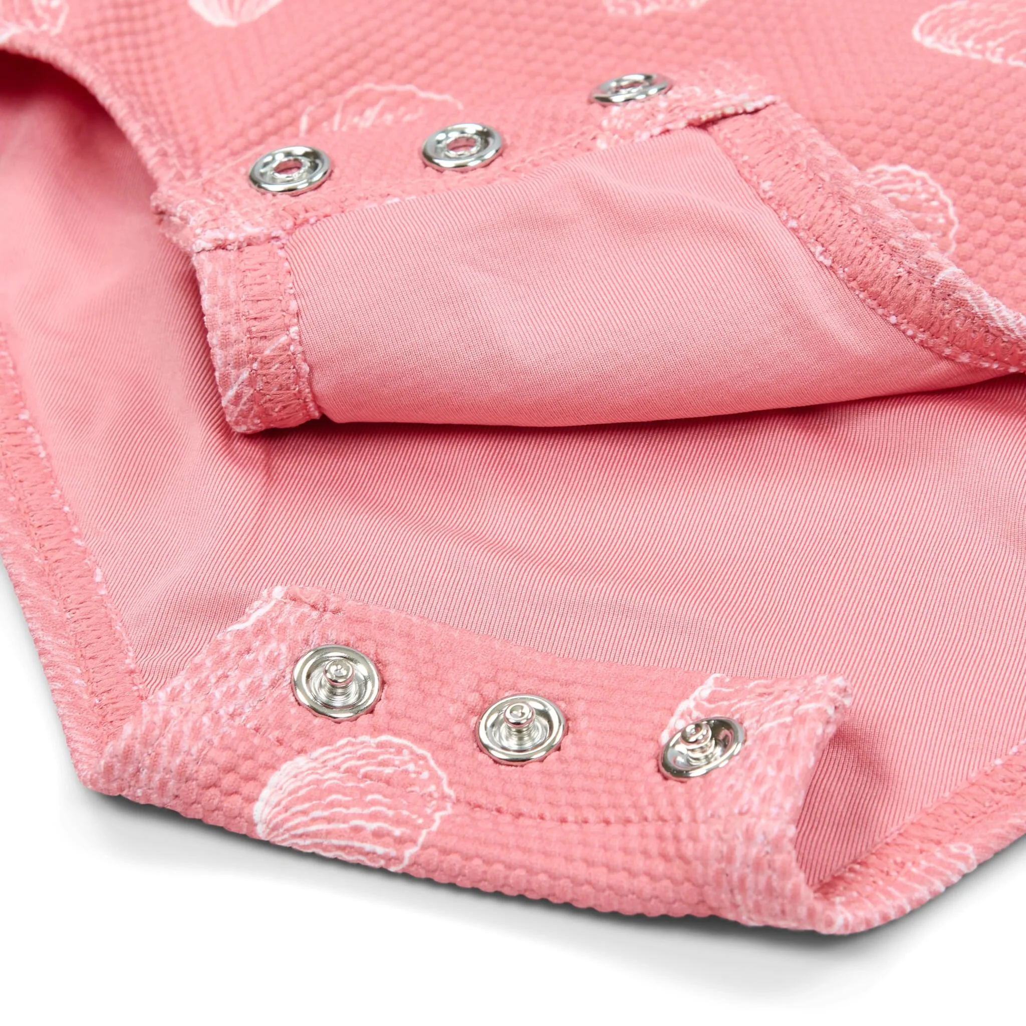 See you at the coast! With this cute swimsuit, you will be the shining star at the beach. It combines the beautiful Ocean Treasures design with style and finesse. Your little diva will love this swimsuit in lemonade pink adorned with a playful print of white shells. The fit is comfortable, and the ruffles on the shoulder straps add a refined touch. The swimsuit is available in four sizes. The two smaller sizes, 62/68 and 74/80, have convenient snap buttons at the crotch for easy diaper changes. Pair with a hat and swim shoes for extra protection at the sea. Don’t forget to always use sunscreen to protect your little one.