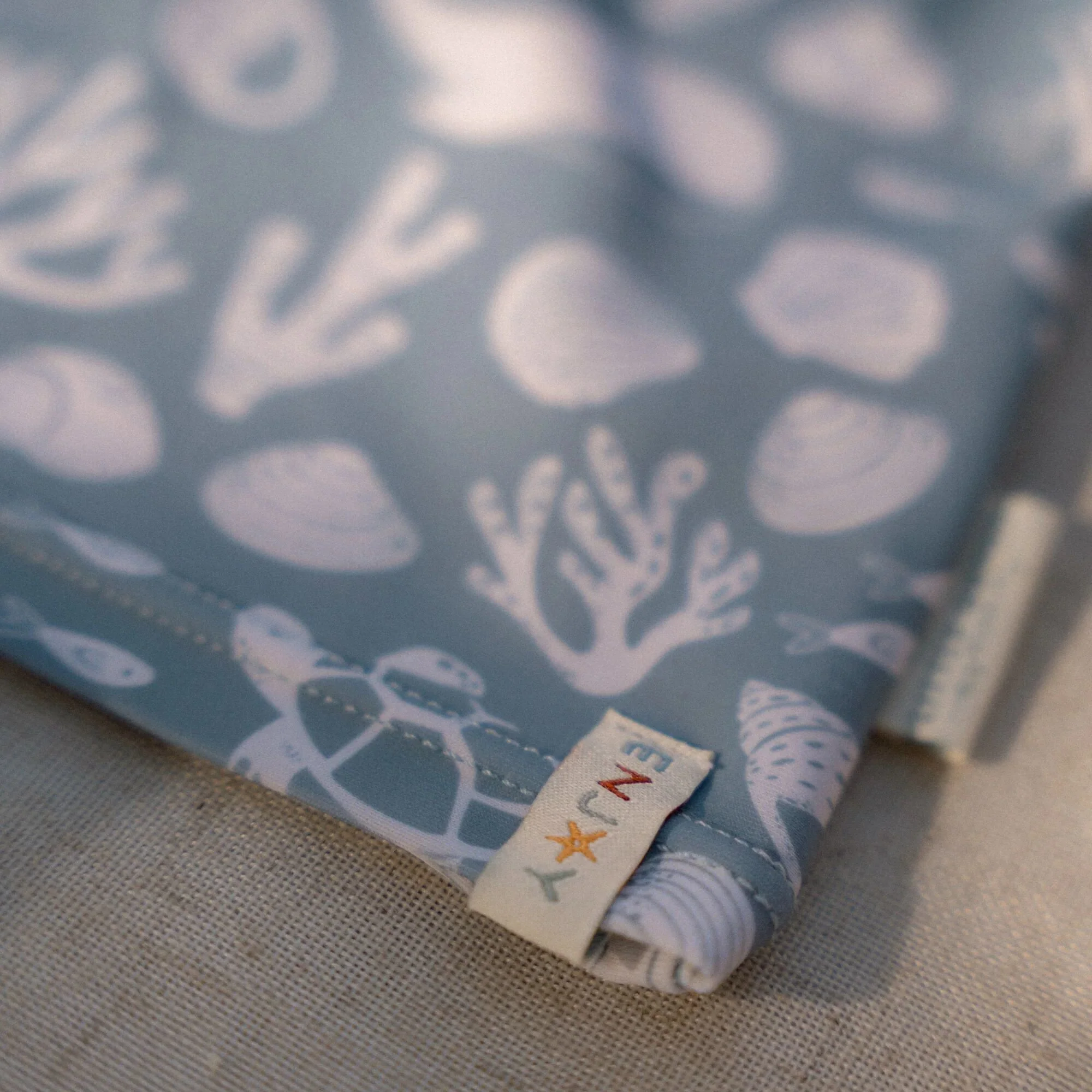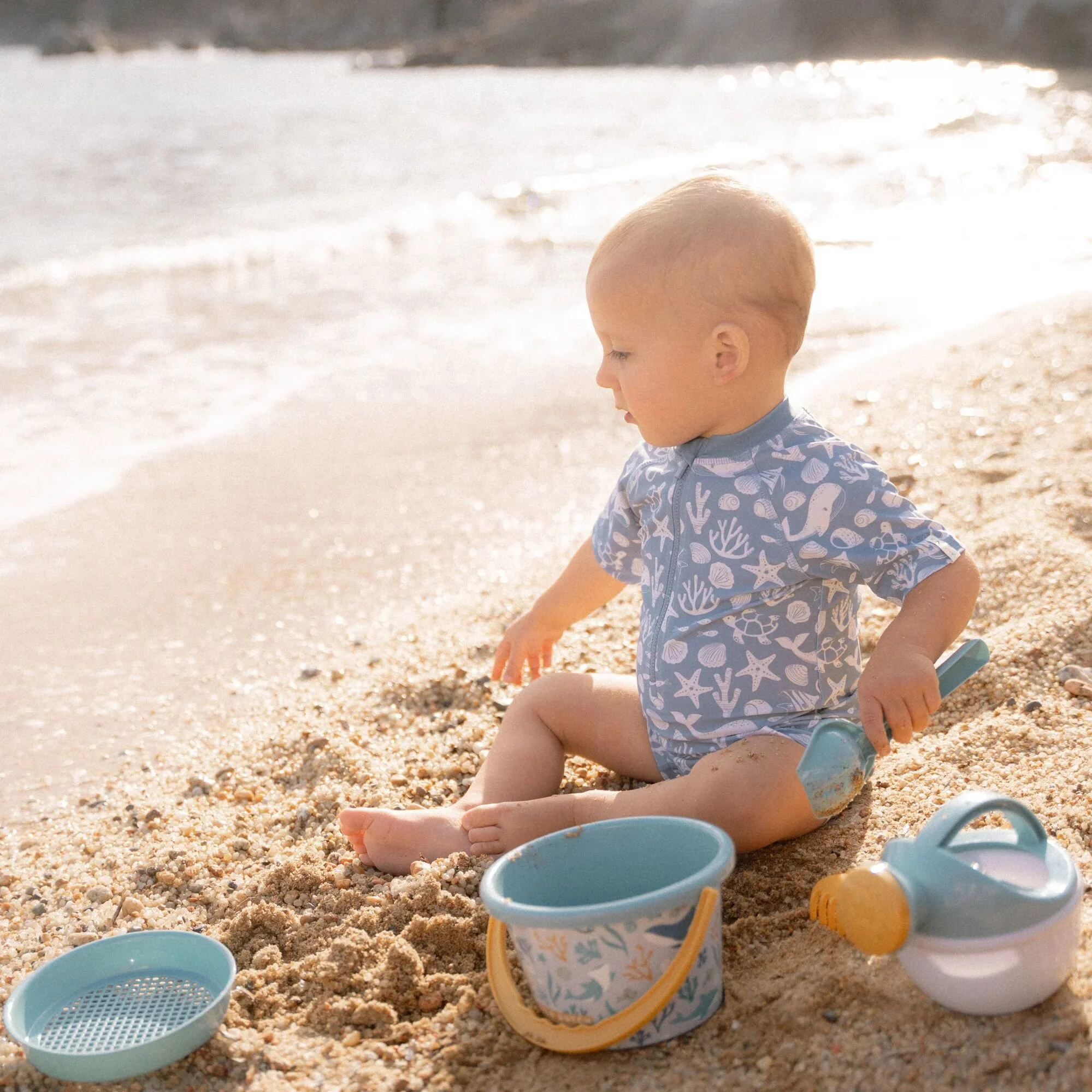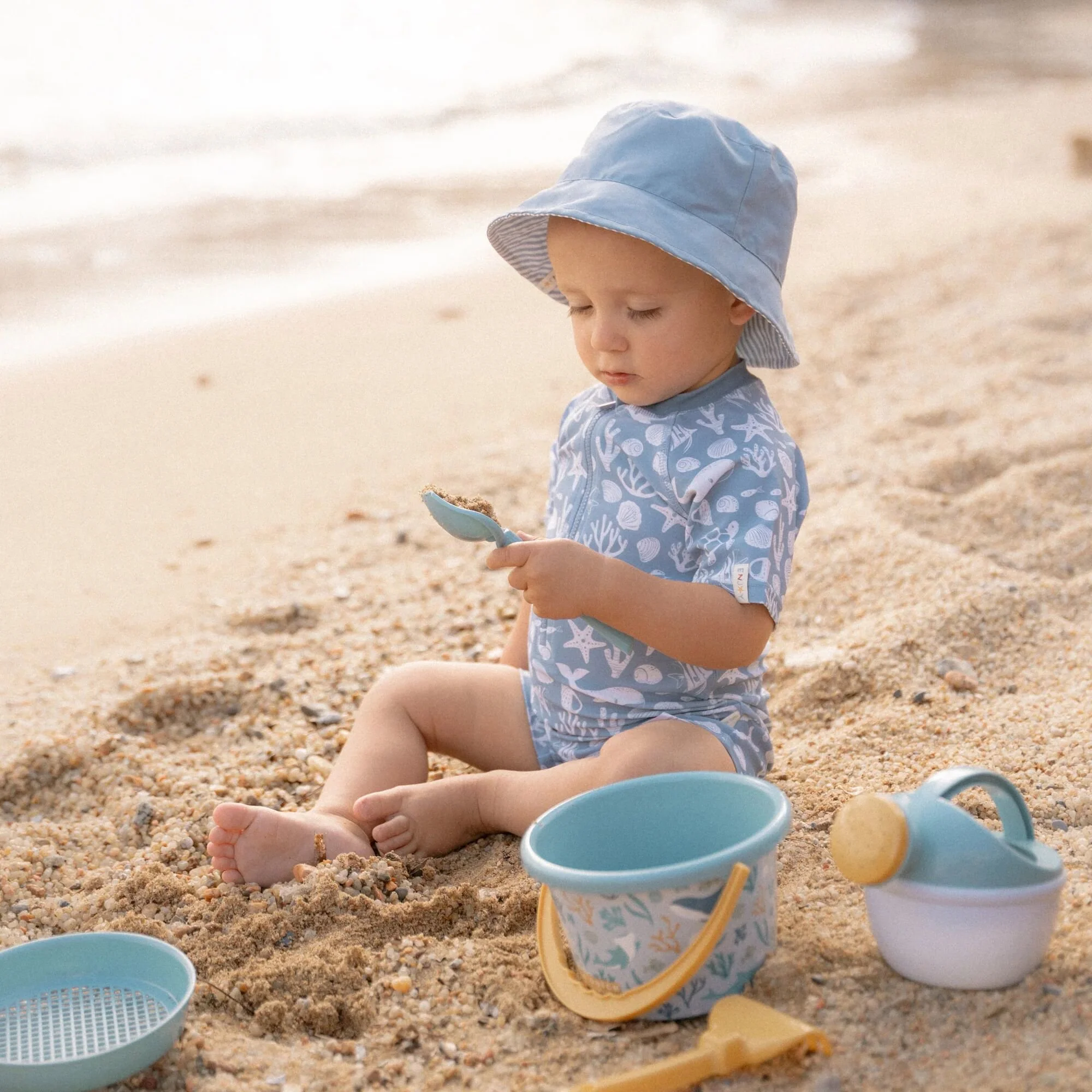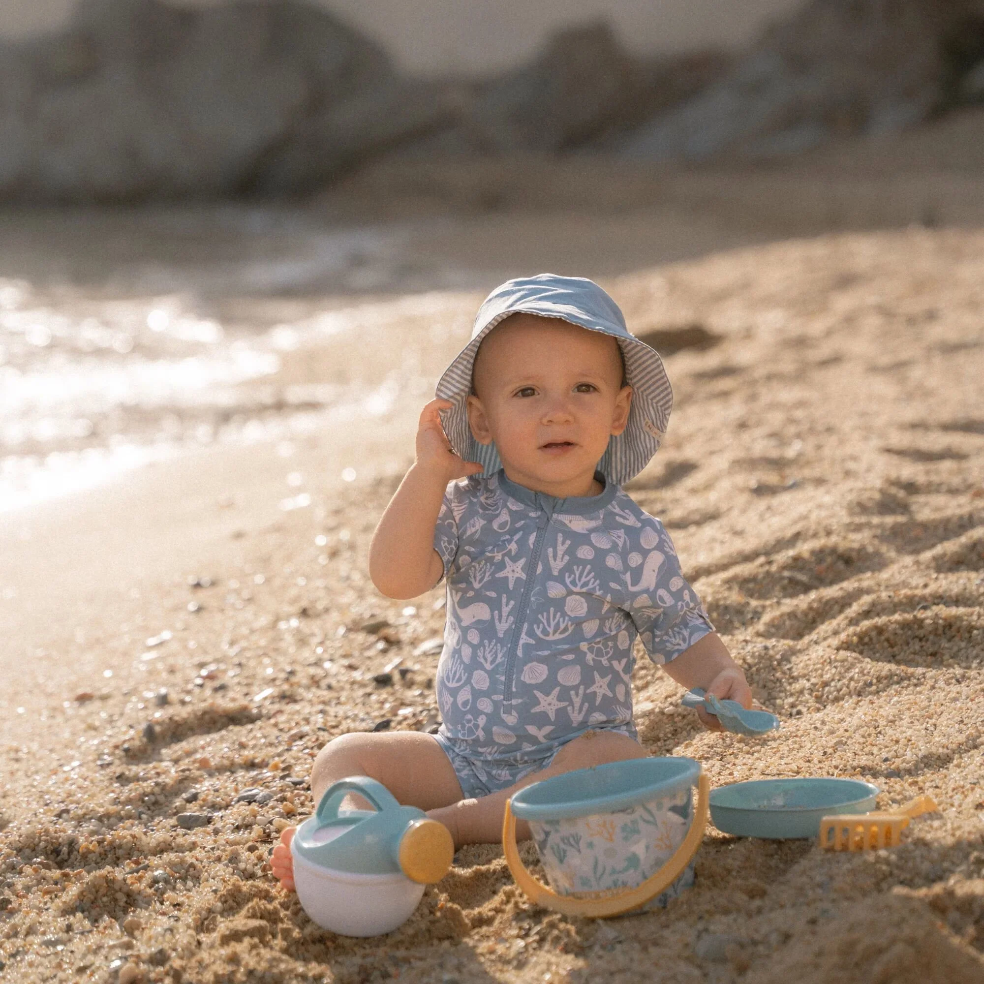 Get ready for high waves and good vibes with this short-sleeved swimsuit, designed for a whole day of sun and water fun. Whether you love the waves or building sandcastles, with this suit you’ll look like the coolest surfer on the beach.This short-sleeved swimsuit keeps your little one warm in the water and protects against the sun. The Sea Life design, adorned with whales on an ocean blue background, makes water activities even more fun.The front zipper ensures easy on and off, even when your child is wet and sandy. Made from recycled polyester, this swimsuit is available in sizes 62/68, 74/80, 86/92, and 98/104.Complete the look by pairing the swimsuit with a bucket hat and matching swim shoes. And don’t forget to always use sunscreen to protect your little one.