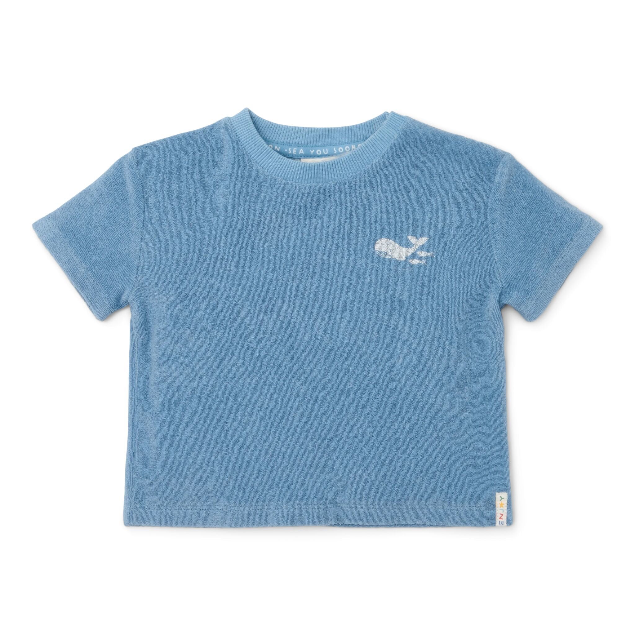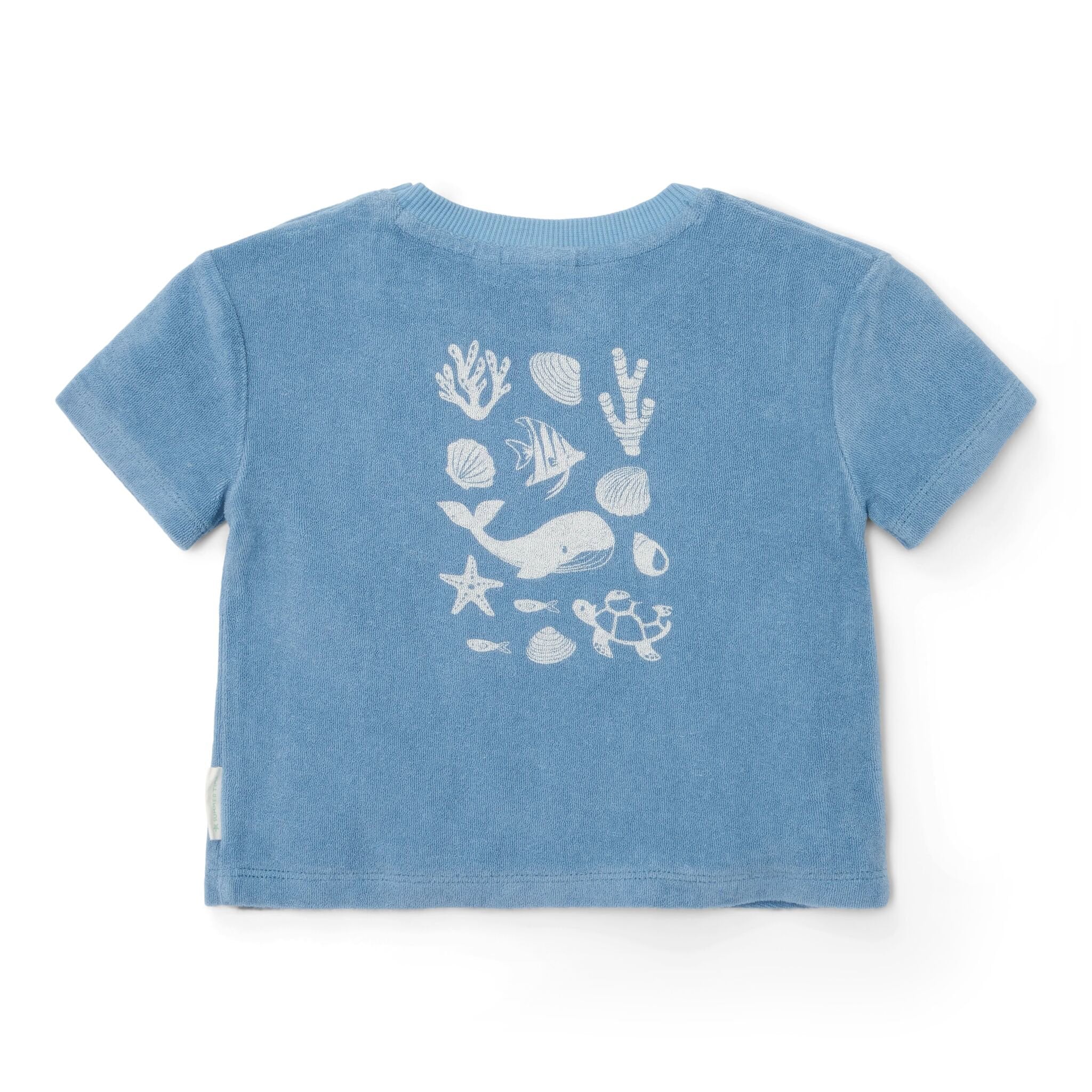Enjoy the summer with our T-shirt and short set from the Ocean Sea Life collection in the color Ocean Blue. Made from 100% organic cotton in soft terry terry cloth, this set offers ultimate comfort after swimming or on sunny days. The back of the T-shirt is decorated with a print of iconic marine animals, which gives a playful and adventurous appearance. Perfect for a day full of summer adventures.