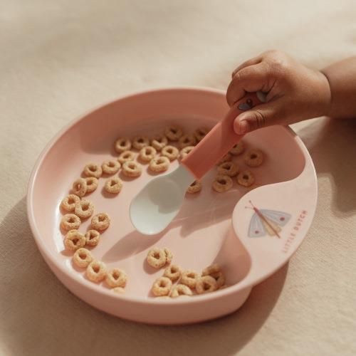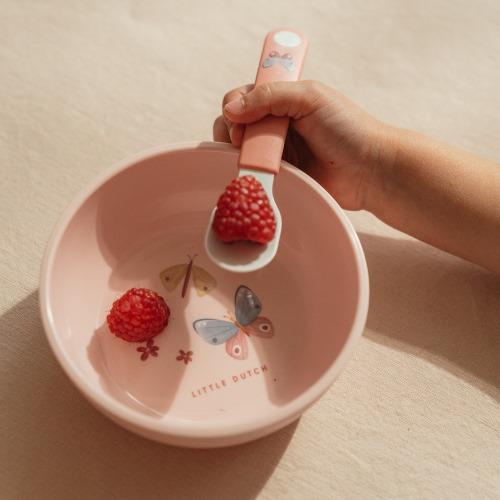 With the Flowers & Butterflies training spoons, learning to eat becomes a party! The spoons have a short handle, so your child can easily hold them. Thanks to the good grip of the spoons, they do not slip out of little hands. A nice feature of the spoons is that they are dishwasher safe.