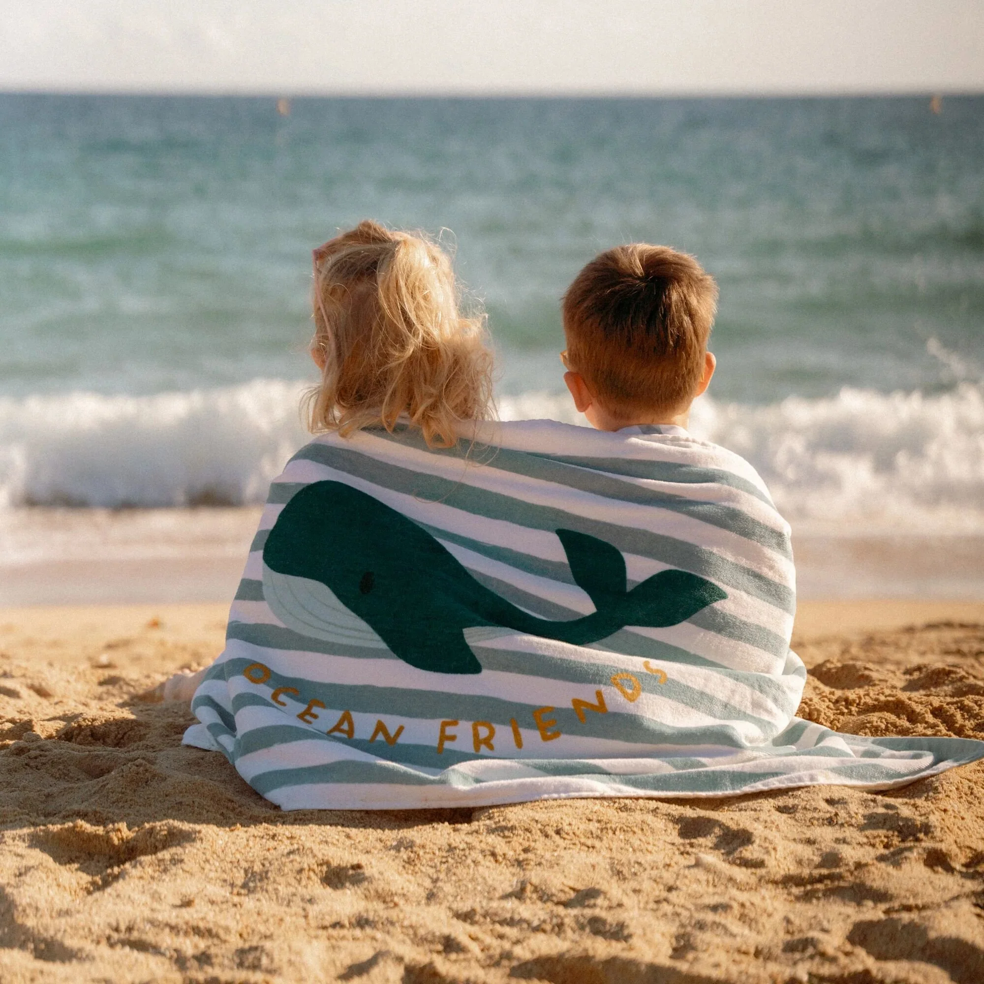 Wrap to dry! After splashing in the water, this bath towel is ready to dry you off and give you warmth and comfort. And you will enjoy the comfort of this soft towel even more thanks to the beautiful Seashells and Stripes design. On the beach or at home, this bath towel is an absolute must after a dip in the water. The colorful print and high-quality 100% cotton fabric feel like a soft hug enchanted with the adventures of the sea. By matching the towel with Ocean Dreams swimwear or inflatable toys, the towel and your little one become even cuter. Dimensions: 60 x 120 cm.