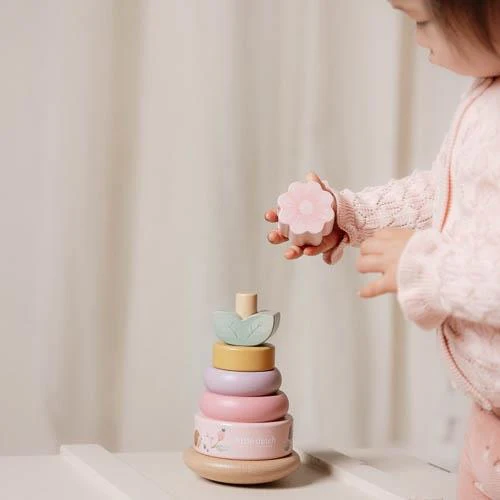 Take on the challenge of stacking the rings on the tumbling base! It is an entertaining game that requires your full attention. Stack the rings in the correct order, and place the flower on top of the tower. This beautiful wooden tumble stacker from the Fairy Garden collection is designed to develop children’s hand-eye coordination in a playful way.