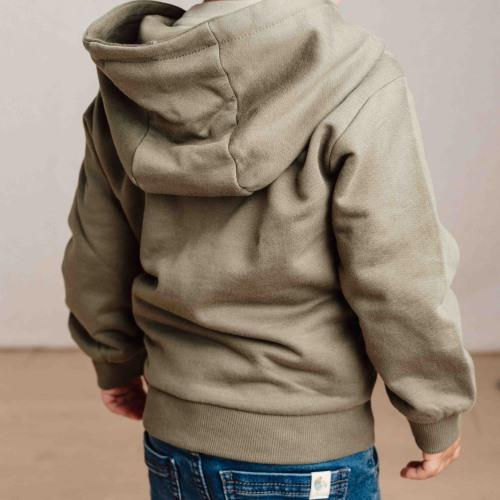 Comfy in the dark green hooded jacket. Made from organic cotton with a soft interior, it provides comfort throughout the day. With a hood and handy pockets. Perfect to layer over outfits, and ideal for cold days on the farm. Effortlessly combine with any piece from the complete Farm collection. Available in sizes 74, 80, 86, 92, 98, and 104.
