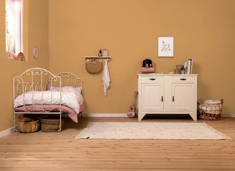 The Little Dutch wall paint extra matte Pure Ochre is part of a current color palette. All colors match the latest collection of Little Dutch to complete your baby or children’s room. The colors have a gray undertone and fit the calm Scandinavian look. Beautiful soft shades such as blue, mint, pink, mauve, beige, and gray. The covering wall paint has a matte luxurious effect. The matte wall paint is also suitable for wood and gets the appearance of chalk paint. Coverage number m2: 20m2