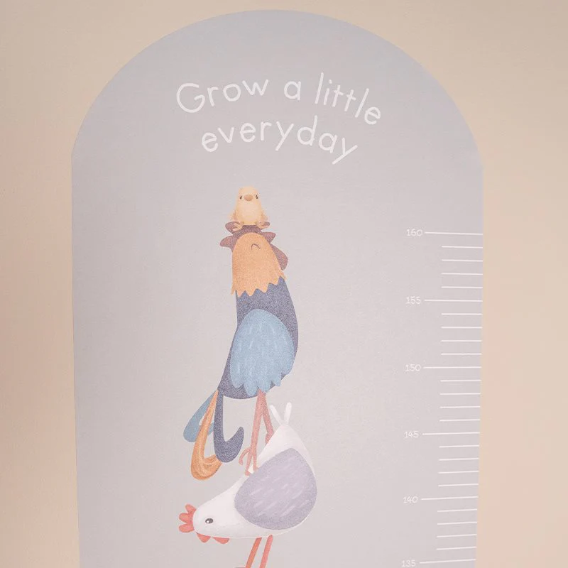 A growth chart wall sticker Little Farm from the brand Little Dutch, to keep track of how fast the little one is growing! The growth chart with farm animals, from chick to cow, is a playful element in the children’s room. The wall sticker is easy to apply and remove, thanks to the high-quality, self-adhesive material. It is a single sticker, with a matte finish and transparent adhesive edge that gives a luxurious look. You can place it on walls and other smooth, hard surfaces. Ensure a clean and flat surface for the best result. Enjoy the rural charm, every day again, with this cheerful and playful Little Dutch growth chart.