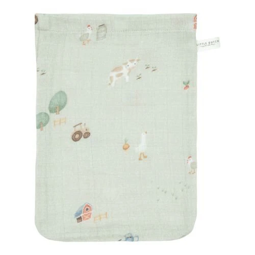 The hydrophilic washcloths of Little Dutch Are indispensable during bathing! They feel wonderfully soft because they are made of 100% organic cotton. Because of this they have a high absorption capacity and they are quickly dry. Ideal to wash your child. This set contains a washcloth in the cute farm print of the Little Farm collection and an olive -green washcloth. The washcloths are 21 x 14 cm. Our washcloths are also available as a set of 2 hydrophilic cloths 70 x 70 cm, hydrophilic cloth 120 x 120 cm and mouth wipes.