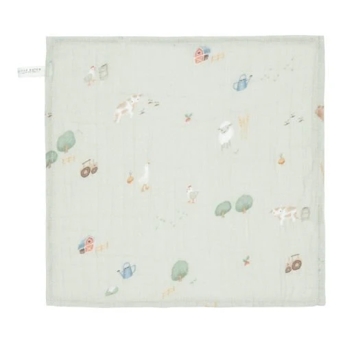 This set of two muslin cloths Little Farm / Olive is made from 100% organic cotton and Oeko-Tex certified. The pre-washed muslin fabric feels extra soft. The cloths are ideal for feeding, eating, or on the go. The muslin cloths are 26 x 26 cm.
