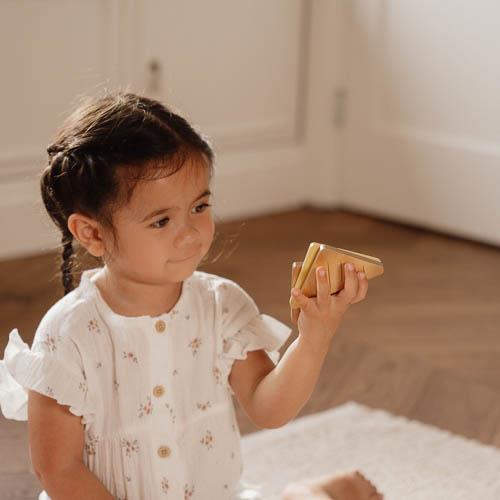 This 31-piece wooden picnic playset will spark your little one’s imagination to turn any moment into a delightful picnic. The wooden picnic basket is packed with delicious food, including 2 sets of cups, plates, and cutlery, and of course a blanket, providing the perfect setting for role play. The fruit in this set can be sliced in half with the wooden knife and reattached thanks to Velcro. There are also sandwiches, a croissant, and a baguette to top with slices of cheese, tomato, and lettuce for a real picnic experience. The lid of the jam jar and the cap of the orange juice bottle can be opened and closed, and there is even a treat for little sweet tooths.