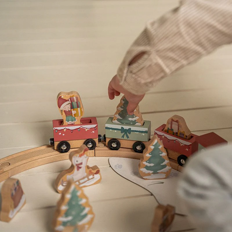 The Little Dutch Christmas train set is a perfect addition to the holidays! The wooden train track includes a locomotive, three wagons, and a variety of accessories, such as a little house, presents, and a reindeer. Children from 18 months can use the set to create their own Christmas stories and let their imagination run wild. This beautiful Christmas train set is a great gift to place under the Christmas tree and will surely provide many years of fun and imagination.